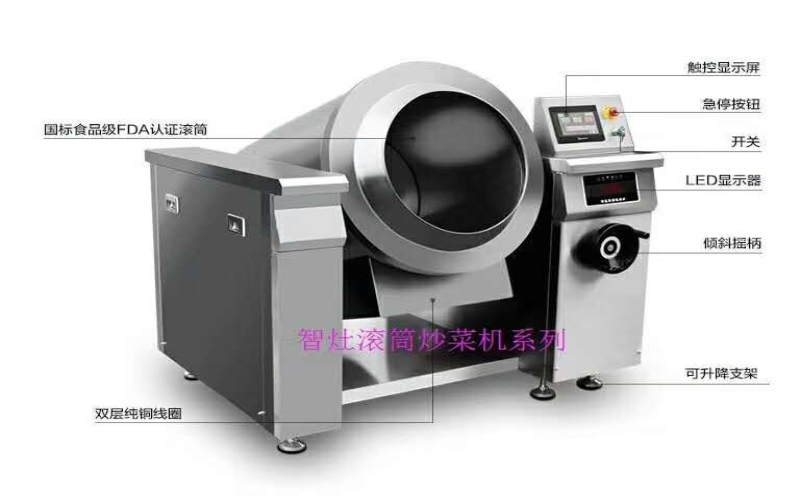 - 自動(dòng)炒菜機(jī)由爐架、滾筒桶身、電磁感應(yīng)加熱系統(tǒng)組成;- 結(jié)構(gòu)合理,外形美觀,具有自動(dòng)翻炒和傾斜出鍋兩大特點(diǎn);- 機(jī)械自動(dòng)翻炒,攪拌均勻,不僅僅提高生產(chǎn)率、降低能耗,而且還節(jié)省能源;- 鍋體沿水平軸旋轉(zhuǎn),由鍋里的攪拌叉波動(dòng)菜肴作刮上拋下的運(yùn)動(dòng);- 機(jī)械自動(dòng)翻炒,可通過變頻器調(diào)速,提高翻炒速度;- 鍋的內(nèi)表面涂有鐵氟龍不沾涂層,便于清洗和使用;- 廣泛適用于餐飲、機(jī)關(guān)、部隊(duì)、學(xué)校、廠礦等單位;- 本自動(dòng)炒菜機(jī)成為炒鍋類設(shè)備的更新?lián)Q代的新產(chǎn)品;